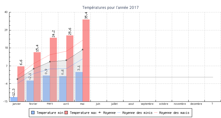 | mai | 3.1 °C | 11.3 °C | 35.4 °C | 22.7 °C | 16.9 °C | 2.4 km/h | 40.2 km/h | 267 |